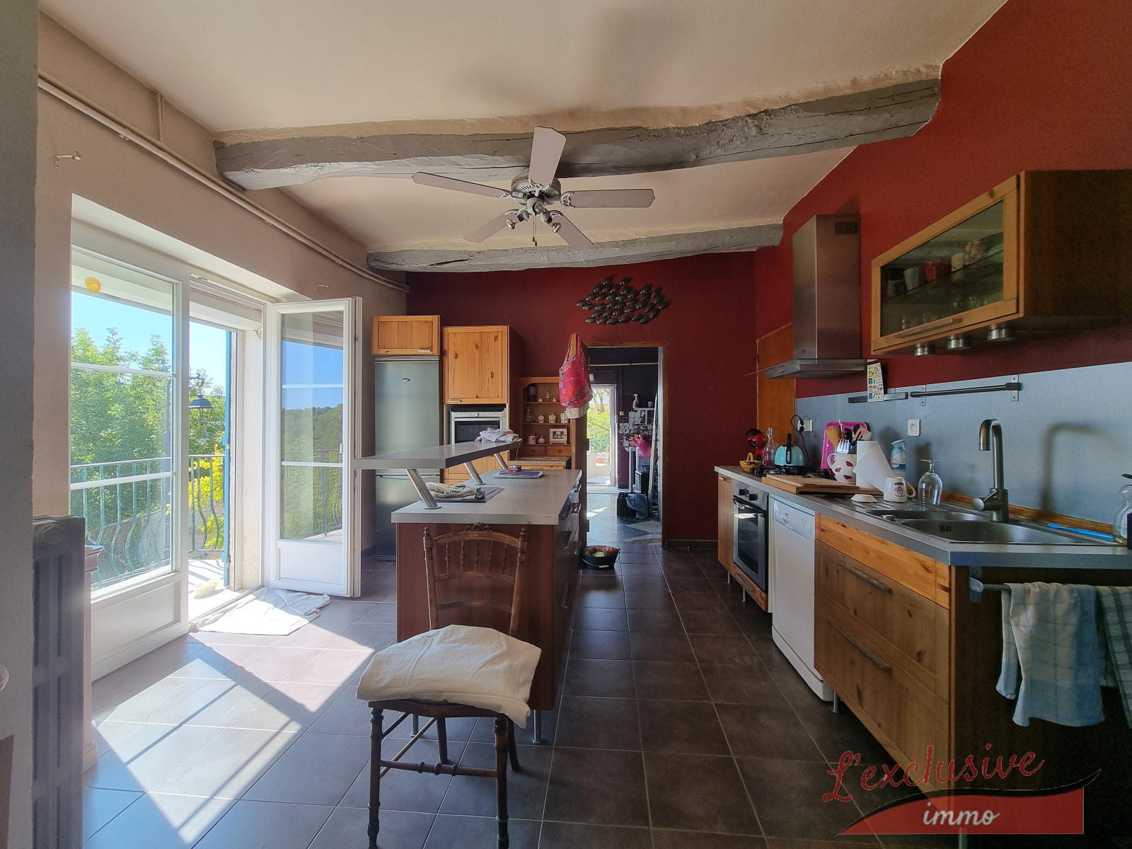 Maison très agréable et spacieuse, exposée SUD, sans vis à vis , avec deux entrées possibles, un balcon longeant la cuisine et le slon, une vue dégagée et dominante, possibilité de garer une voiture + parking à 8mètres, aucune mitoyenneté, et située au coeur du village.