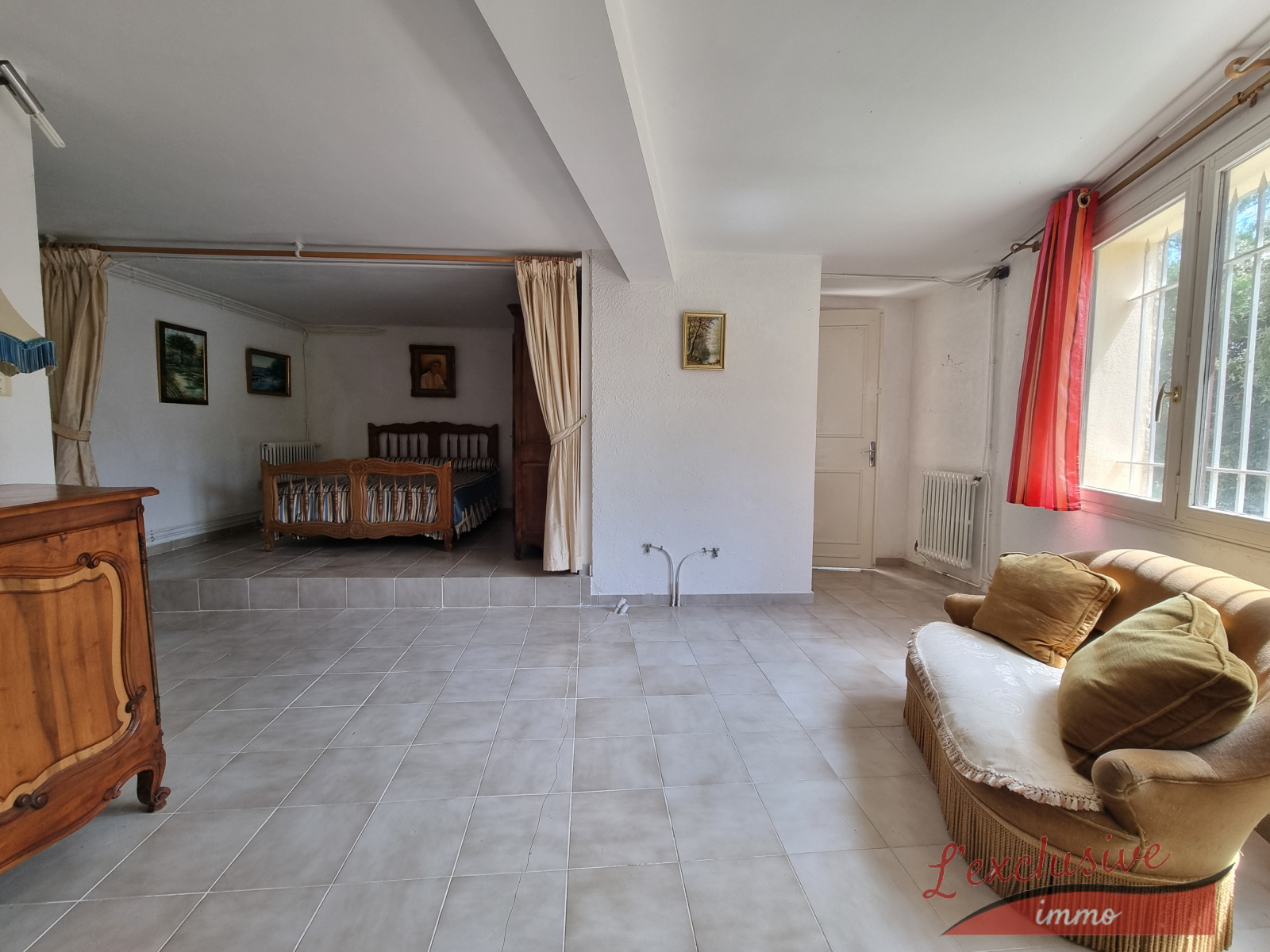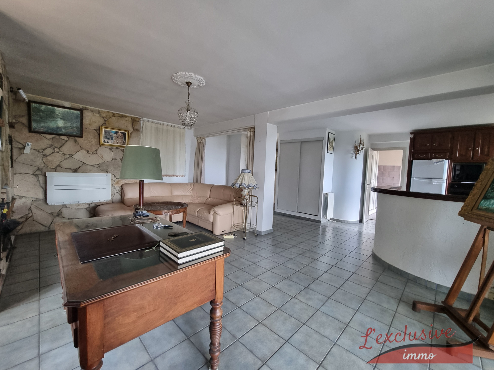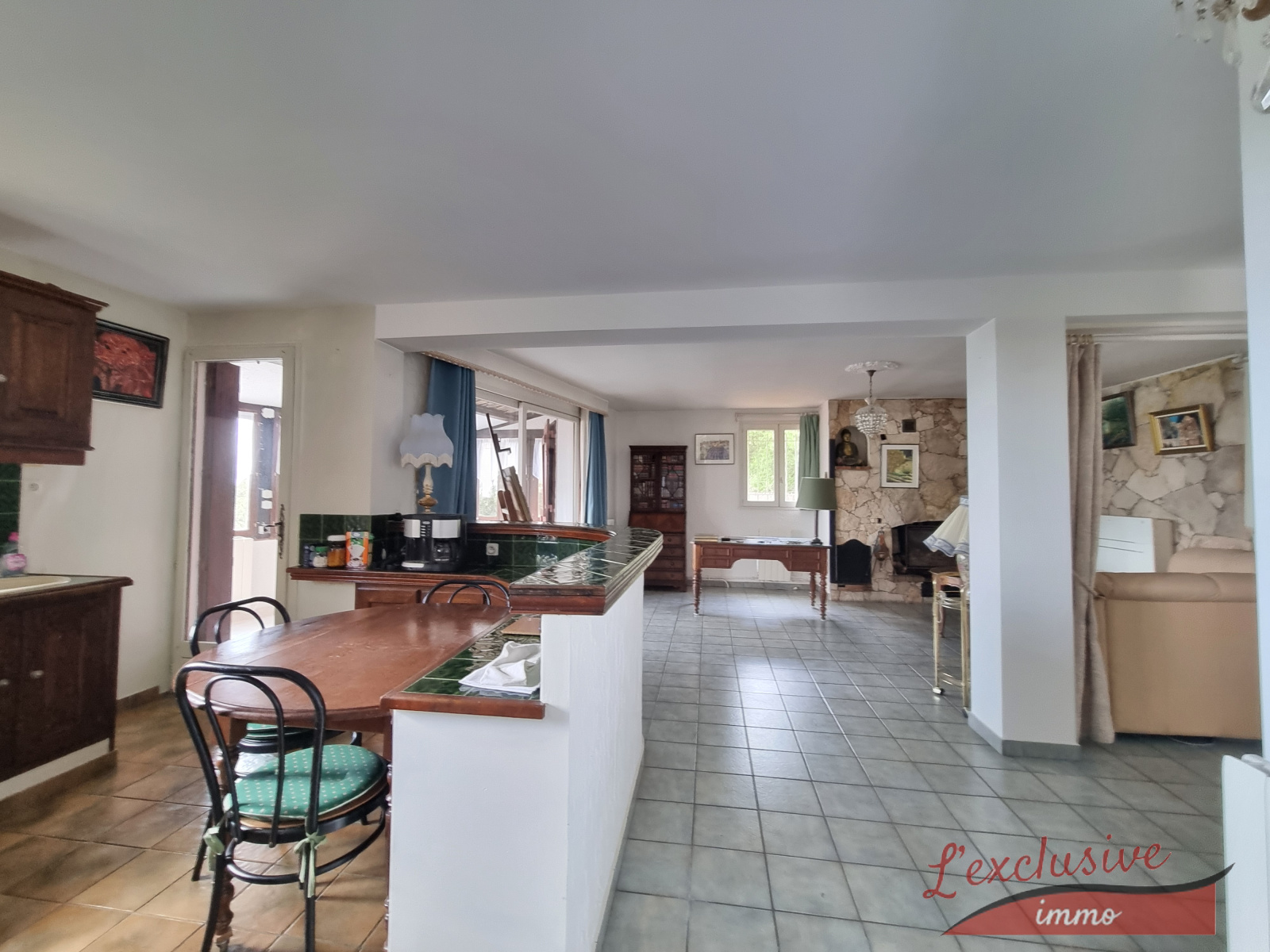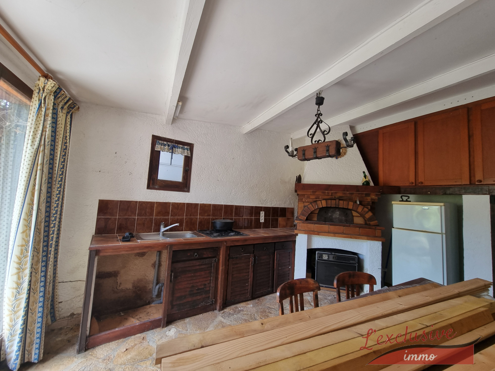 Elle se compose : En rez de chaussée : un sutdio indépendant avec : une grande chambre et sa salle d'eau wc, une vaste cuisine d'été fermée avec son four à bois, un petit sellier, un accès direct au garage.