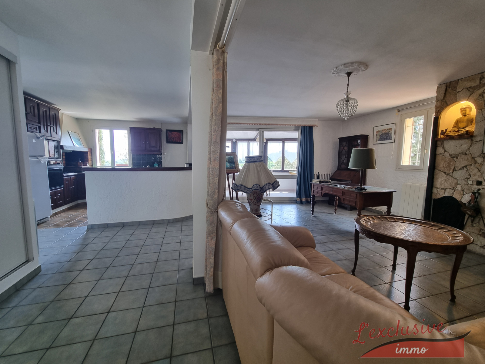 Maison atypique, ancrée dans la roche, elle dispose de chauffage électrique , un insert, une climatisation réversible, double vitrage bois!